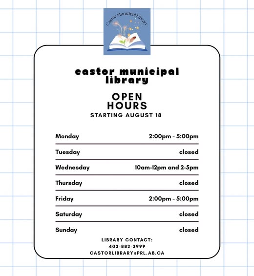 https://castorlibrary.prl.ab.ca/ for upcoming events and details.